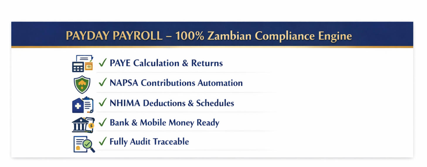 ✅ Guarantee Regulatory Adherence: Ensuring full compliance with ZRA and NAPSA, featuring seamless iCare integration.